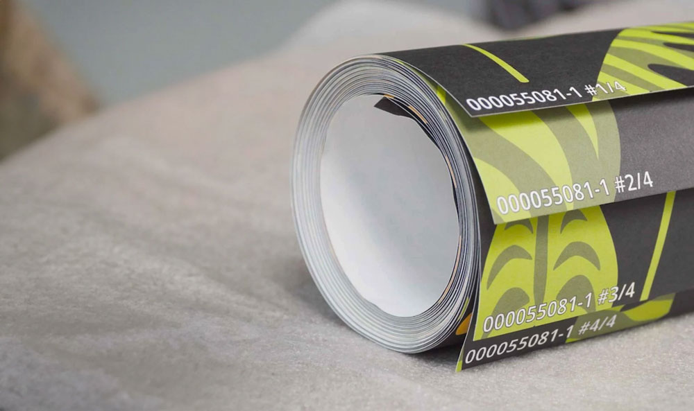 Som standard printer vi banenumrene på den nederste stribe af non-woven tapet. Ved selvklæbende tapet står banenummereringen mellem banerne på rullen. Du kan nemt se, hvilket nummer der hører til hvilken bane, efter at banerne er skåret ud. MuralTex printes i ét stykke, og der printer vi ingen banenumre.